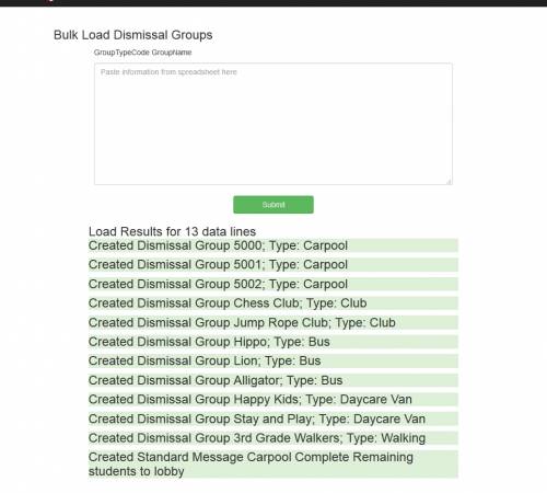 Copy the first two columns of the spreadsheet then paste into the input field. Finally, press the Submit button.