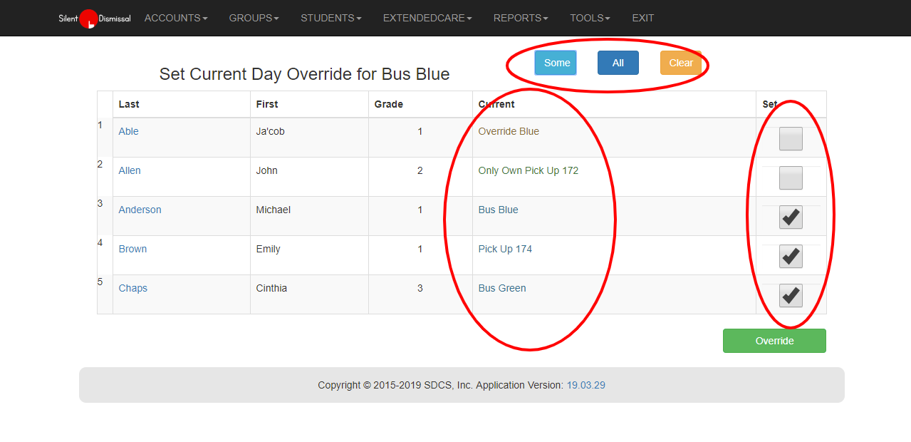 - Some - this will select all students that do not have an existing override for the current day